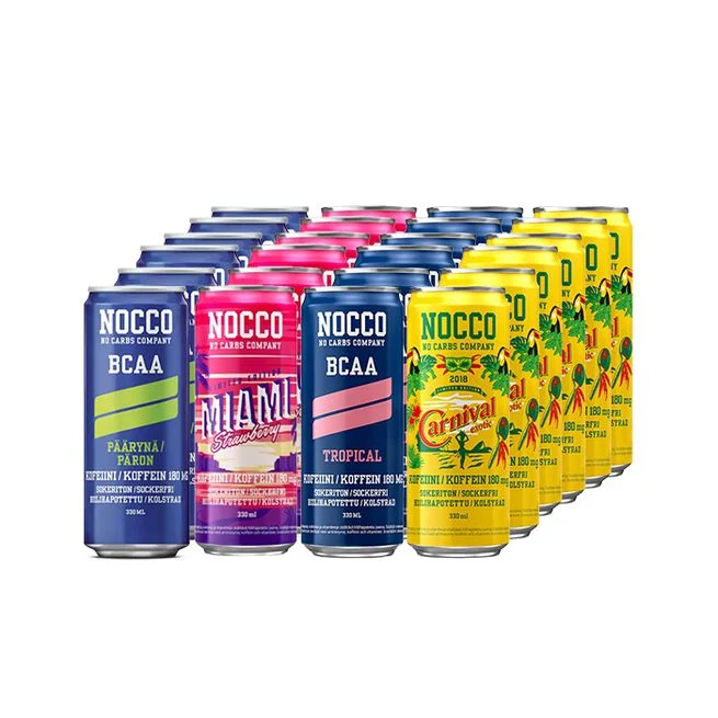 NOCCO BCAA -juoma sisältää lihaskasvua edistäviä haaraketjuisia aminohappoja, keskittymiskykyä parantavaa kofeiinia (myös kofeiiniton vaihtoehto) sekä energiaa antavia vitamiineja.